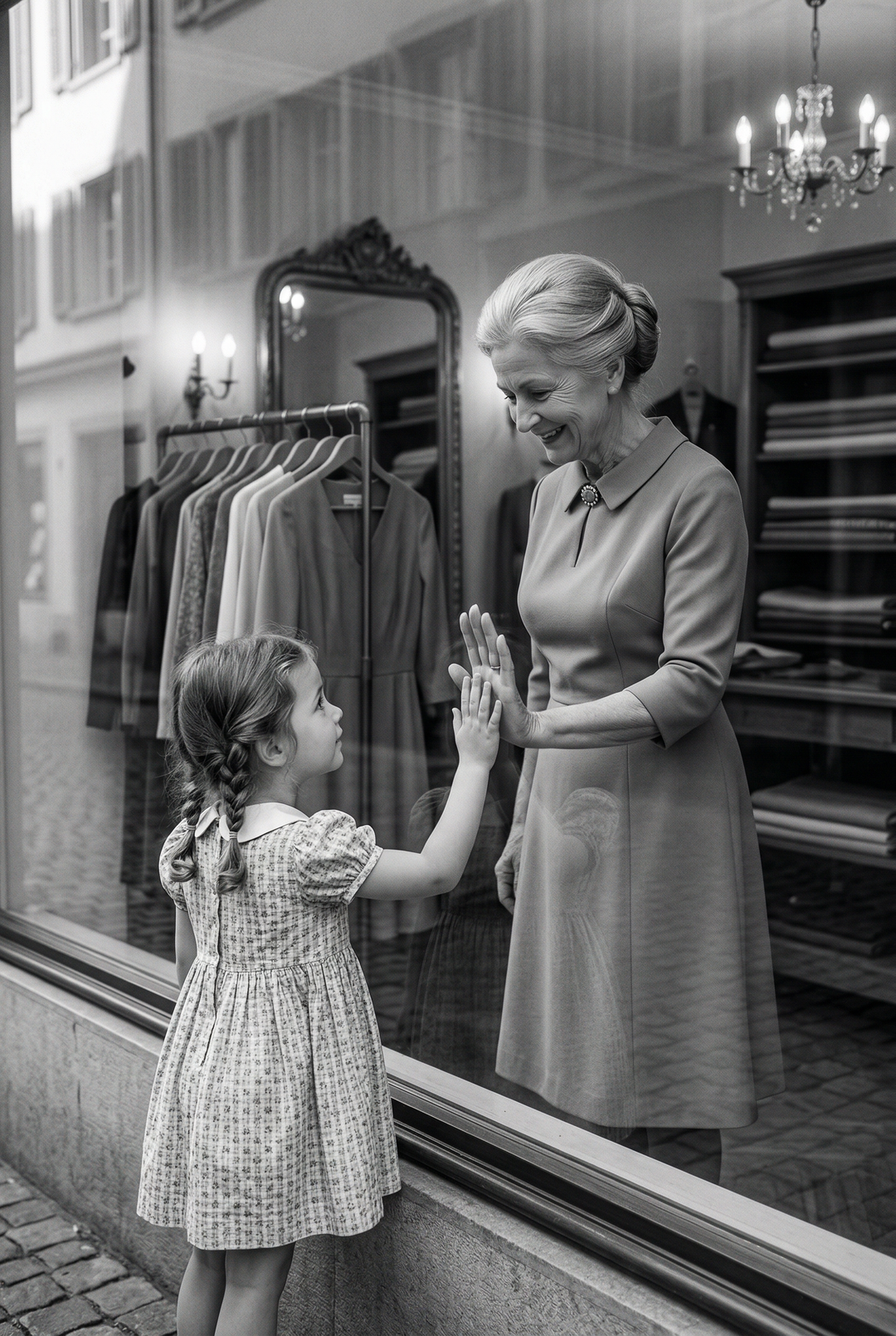 Ihre Enkelin Clara wuchs zwischen diesen Kleiderständern auf. Als kleines Mädchen versteckte sie sich zwischen den Jacken, betrachtete die Stoffe und lauschte den Geschichten der Frauen, die hereinkamen. Ohne es zu wissen, lernte sie dort alles, was zählt.